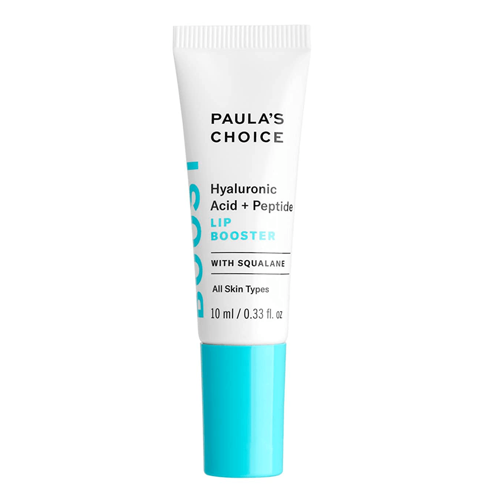 We recommend Paula's Choice Lip Booster. It contains konjac sponge spheres and hyaluronic acid. Hyaluronic acid absorbs water and that increases lip volume to give lips a fuller look. Plus, it contains antioxidants to keep your lips healthy.